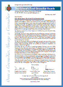 Our intention is to minimise costs and complexity, thereby maximising fundraising returns. We need volunteers to form the project teams and to come up with ideas. So if you would like to help, please let the Regimental Adjutant (020 7414 3280; regtladjt@grengds.com) or the Project Officer (020 7414 3281; projectofficer@grengds.com) know as soon as possible. Above all, we need money. We ask for your forbearance if we approach you more than once - we simply want to provide you with an opportunity to be generous in a way that suits you best and we may not always get it right first time, unlike the Regiment !